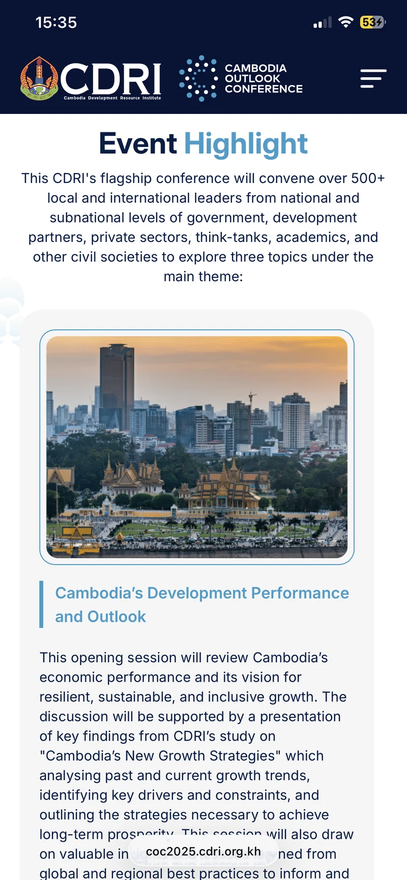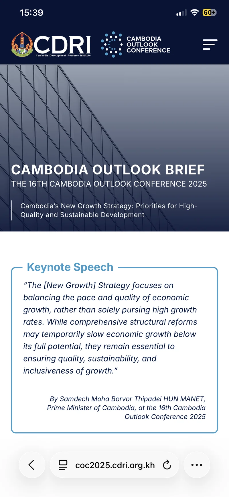 With the new website, the Cambodia Outlook Conference now has a strong digital platform that elevates its visibility, facilitates meaningful participation, and reinforces its position as a leading national policy event.